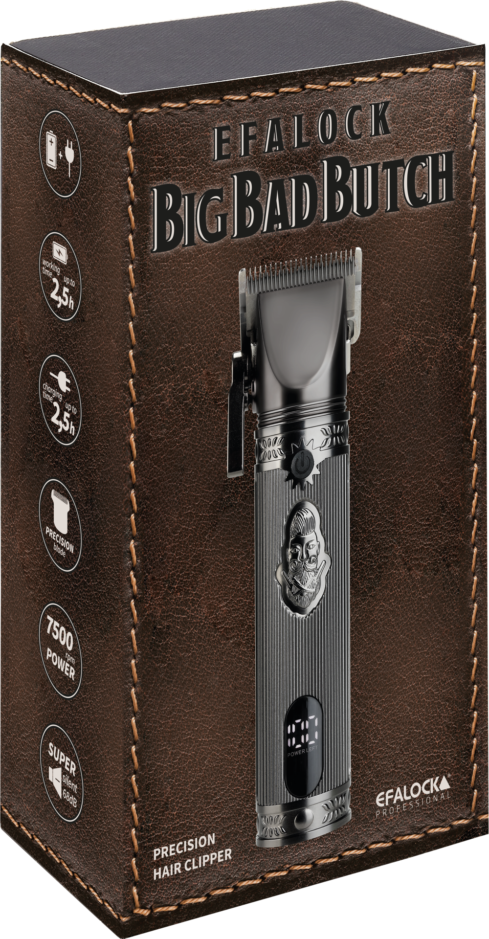 De BIG BAD BUTCH professionele hair clipper staat voor compromisloze kracht, maximale precisie en een stijlvol ergonomisch design. Deze hoogwaardige tondeuse is speciaal ontwikkeld voor barbers en kappers die dagelijks topprestaties eisen. Perfect voor strakke contouren, vloeiende overgangen en gedetailleerd knipwerk.