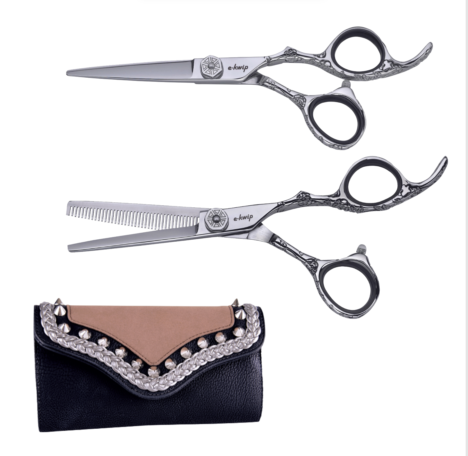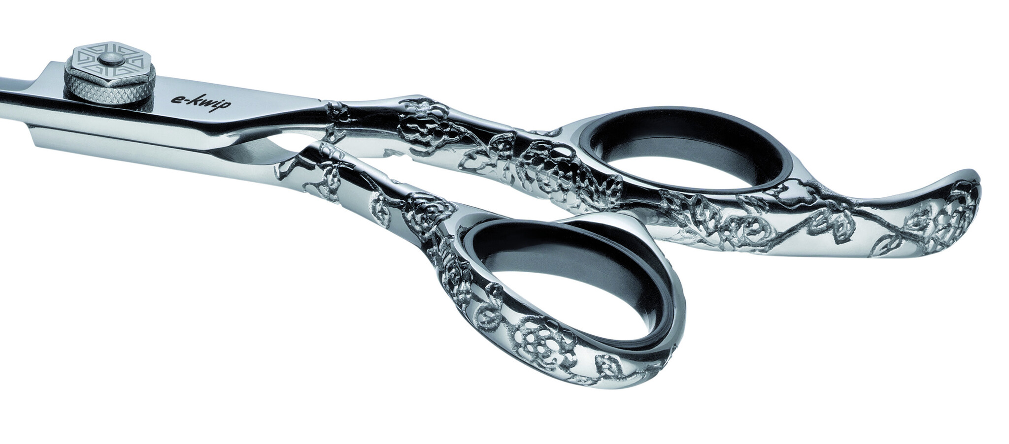 Met de E-Kwip Flowerset Silver heb je echt een unieke scharen Set in huis! De ogen zijn voorzien van een relief Bloemen motief. De instelbare schroef is voorzien van swarovski steentjes. Beide schaar en coupeschaar zijn alleen leverbaar in de maat 5.5. De set word geleverd in een mooie zwarte box. De scharen zijn gemaakt van hoogwaardig Japans staal en hebben een enorme scherpte. Gemaakt voor jarenlang professioneel gebruik.