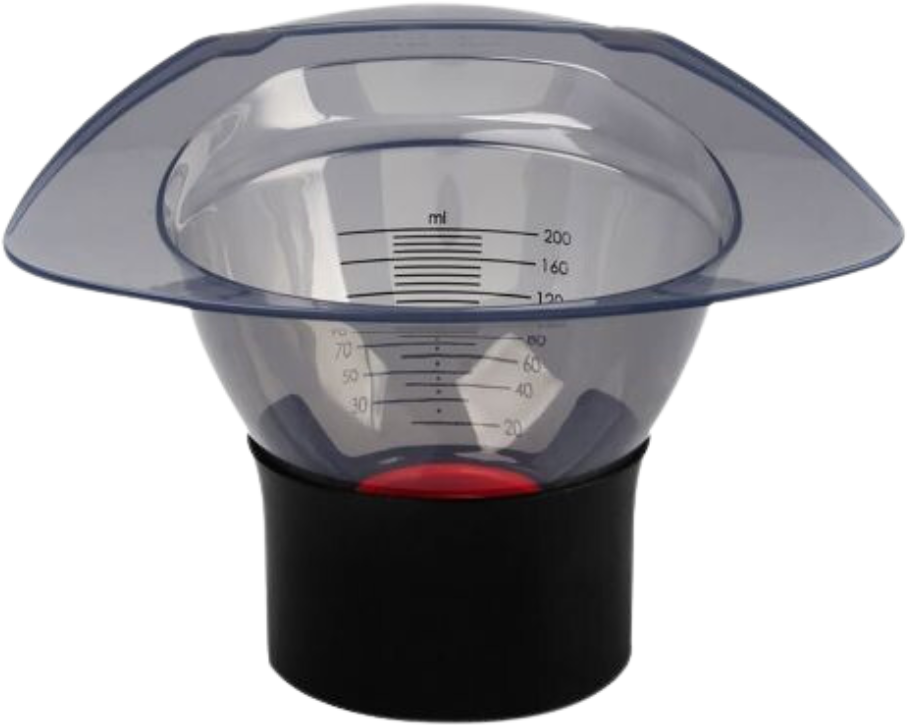 De transparante schaal met duidelijke inhoudsaanduiding zorgt ervoor dat je altijd de juiste verhoudingen gebruikt. Daarnaast ligt het verfbakje comfortabel in de hand door het handige handvat, ideaal voor langdurig gebruik tijdens drukke werkdagen in de kapsalon.