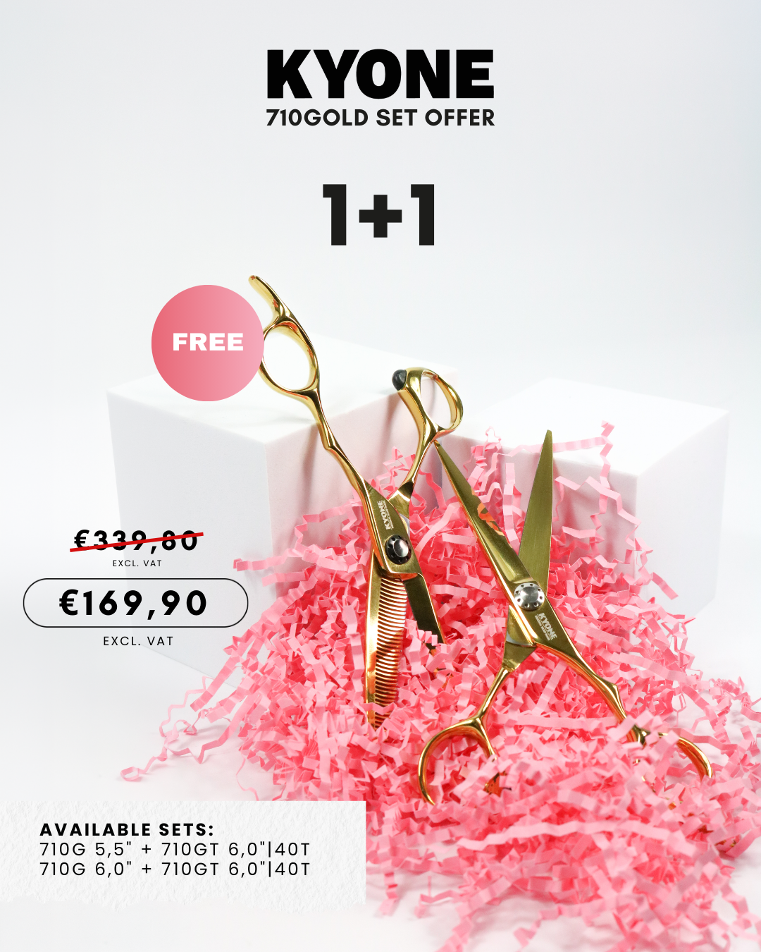 Til je knipwerk naar een hoger niveau met de Kyone 710 Gold scharenset. Deze professionele set bestaat uit de Kyone 710 Gold knipschaar (5,5”)en een gratis Kyone 710T Gold coupeschaar (6,0”). Beide scharen combineren luxe design met ergonomische technologie en zijn speciaal ontwikkeld voor kappers en barbers die dagelijks topprestaties verwachten.