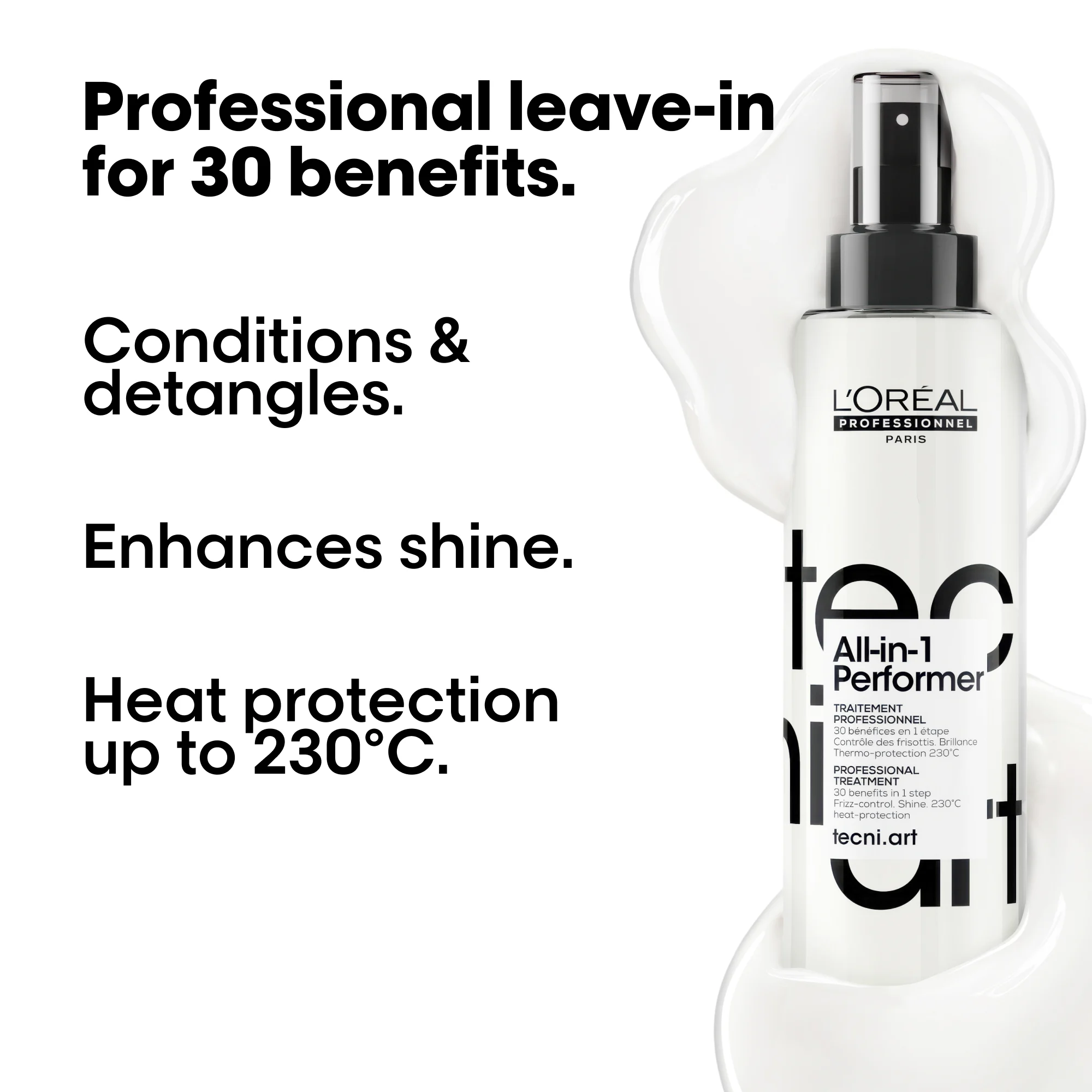 Met maar liefst 30 gecombineerde verzorgings- en stylingvoordelen is deze spray ideaal voor dagelijks gebruik, zowel thuis als in de salon.