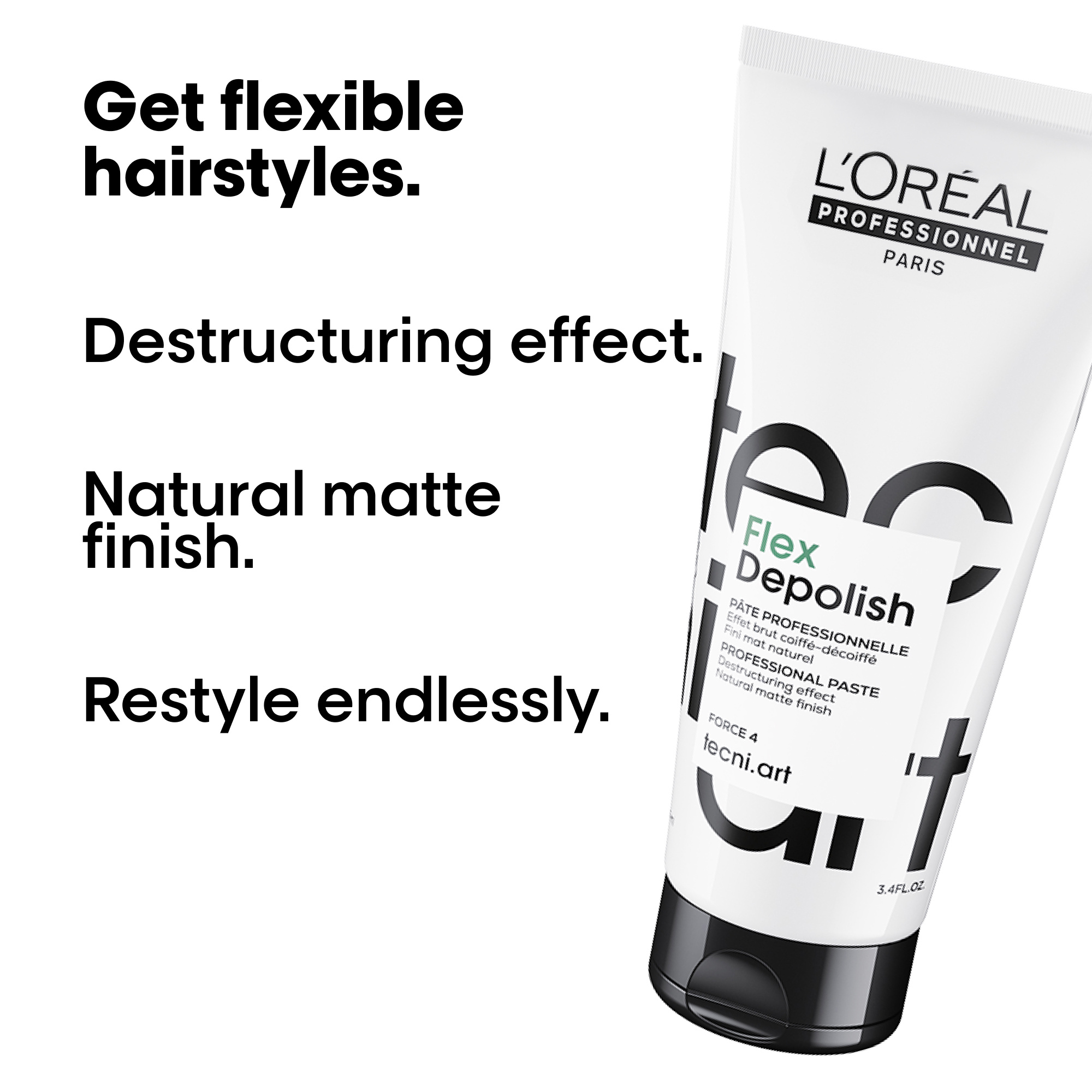 Depolish is de destructieve en verwerkbare pasta van L'Oréal Professionnel . De TECNI.ART must-have voor deconstrueren en mat haar voor een ruige, ongepolijste look die je eindeloos kunt verbouwen.