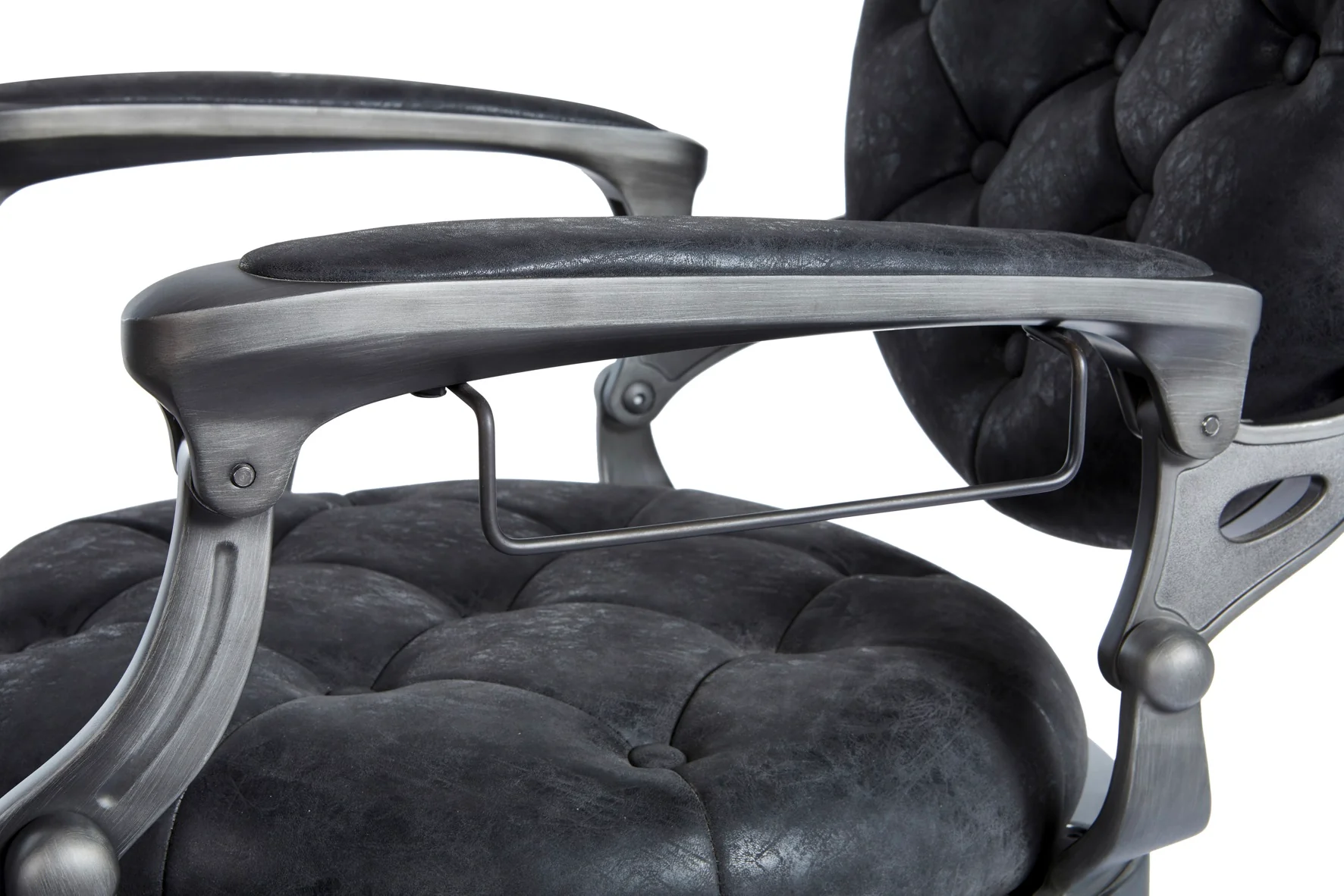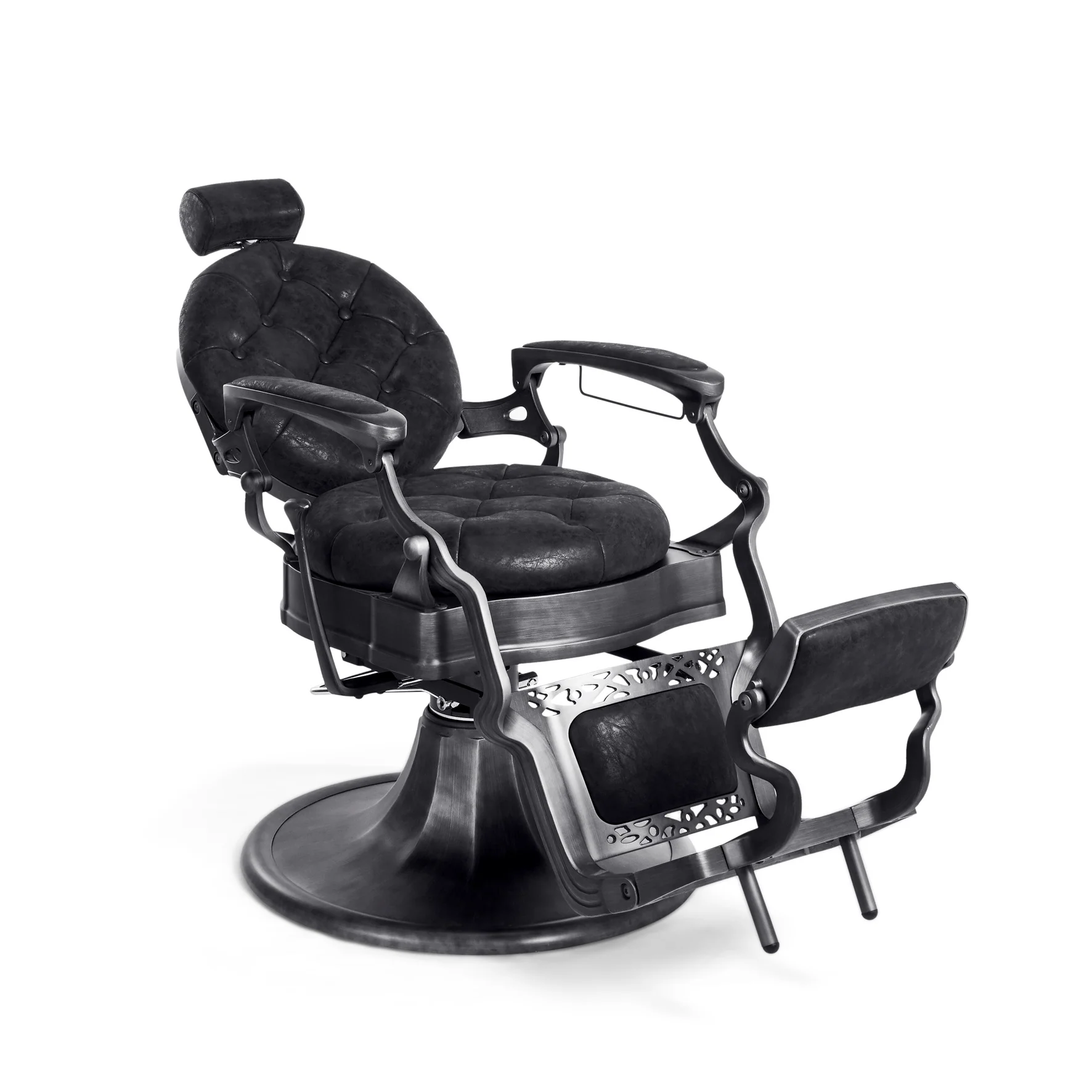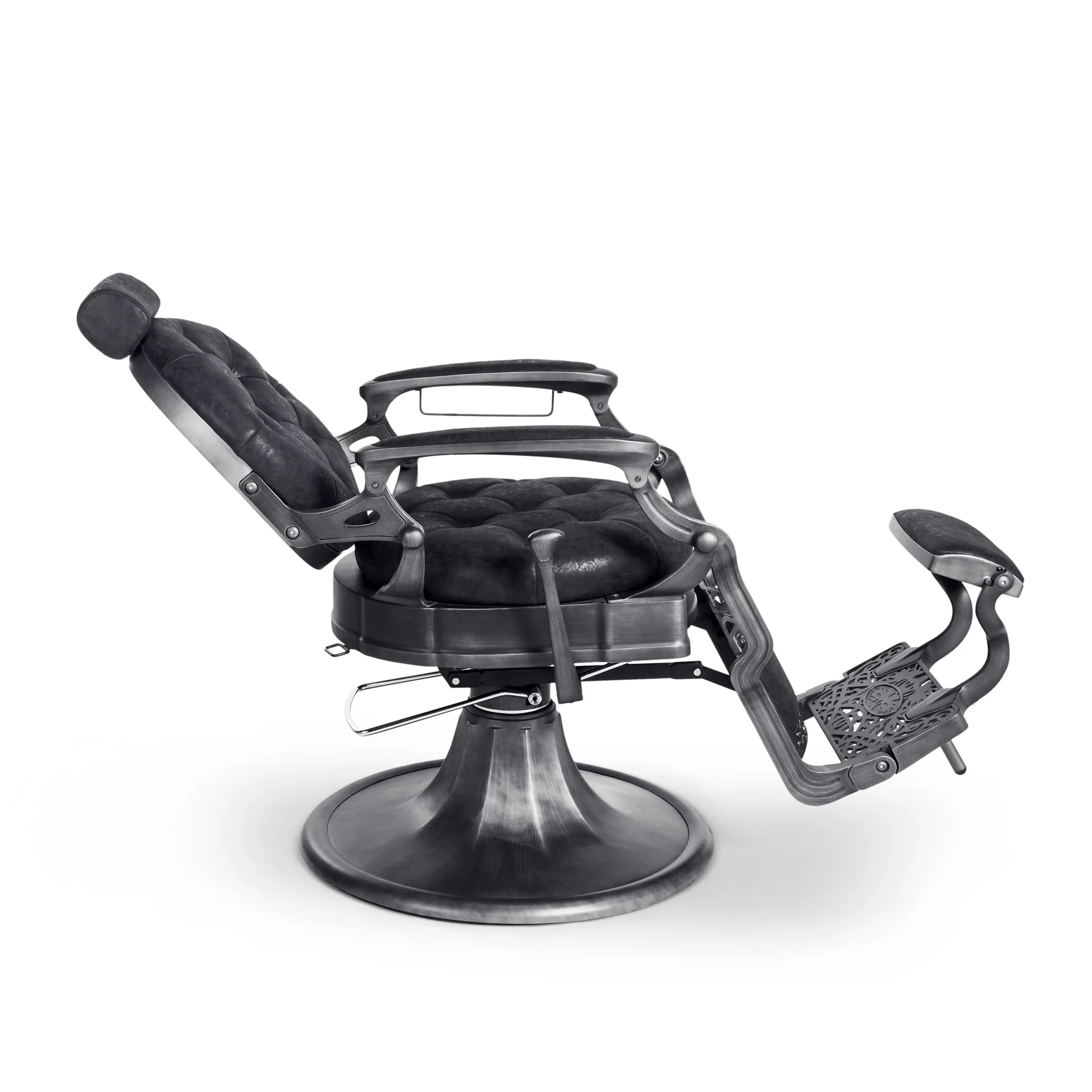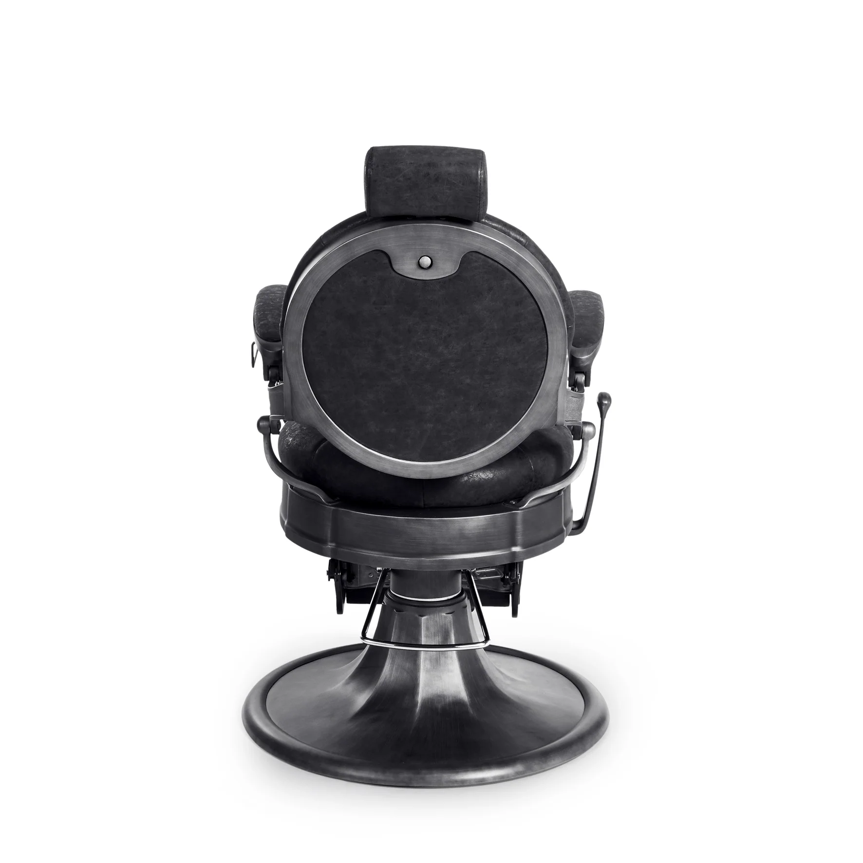 Mooier dan de Clint vind je geen barberchair. De looks uit de forties en fifties, met de kwaliteit en het comfort van nu. Werkelijk schitterend afgewerkte Barberchair, die je Barbershop de uitstraling geeft die je zoekt. De Clint is voorzien van een afneembare en in hoogte verstelbare hoofdsteun. De rugleuning is uiteraard kantelbaar voor scheer behandelingen. In een prachtige verweerde zwarte kleur. De stoel is gemaakt van aluminium, wat hem uitzonderlijk licht maakt. De pomp echter heeft een draagkracht van 300 kilo. Het lichte aluminium doet dus niets af aan kwaliteit.