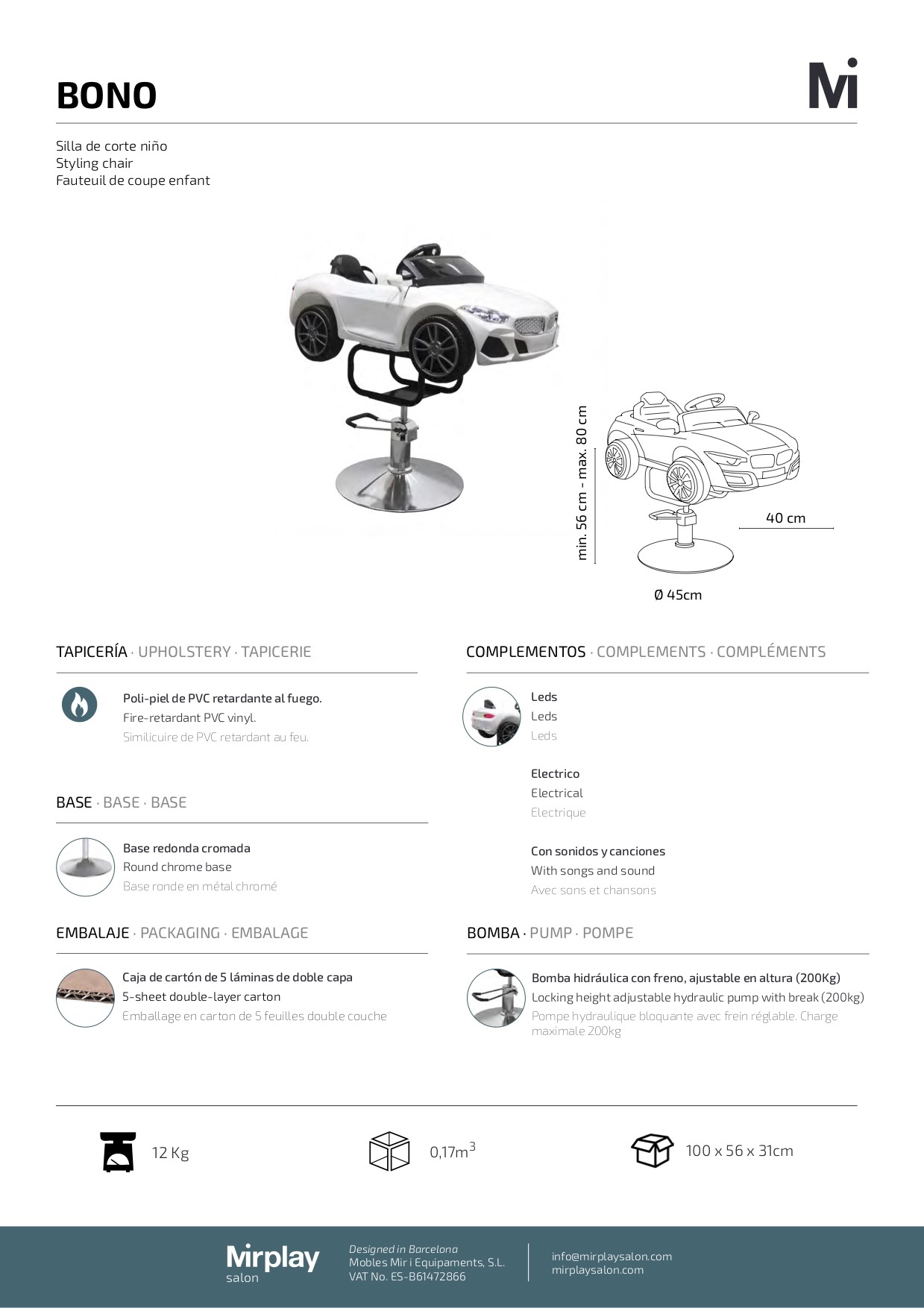 Mirplay Kappersstoel KIDS Bono Wit Meer informatie