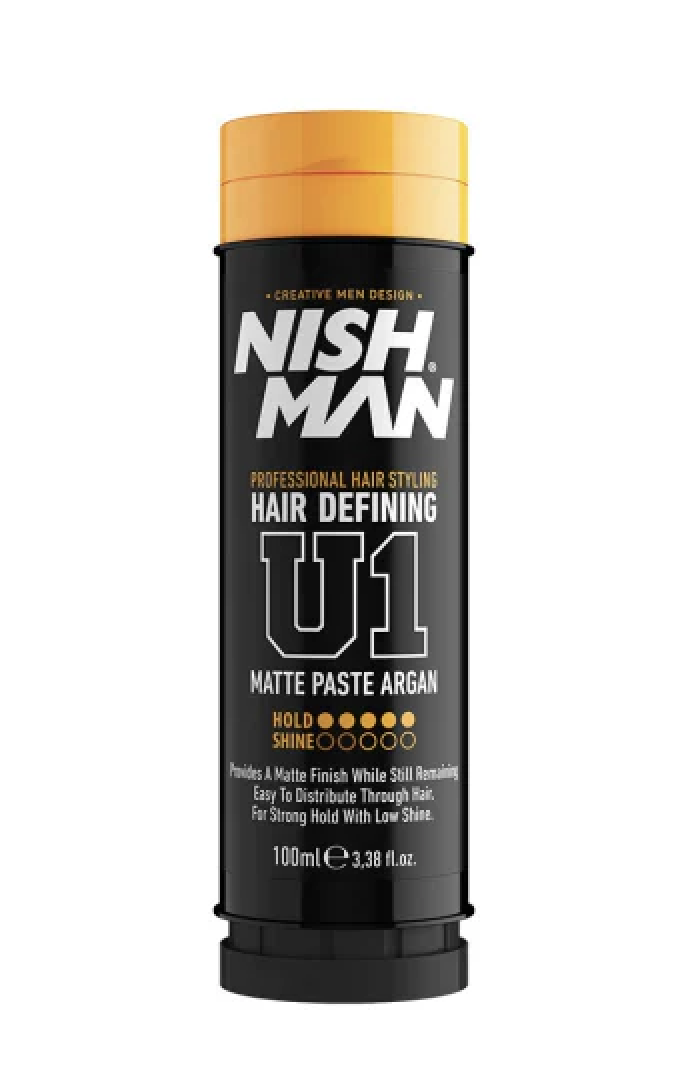 Nishman Hair Defining U1 Matte Paste Argan is ontworpen om te presteren volgens de hoogste standaard, waardoor u high-fashion, extreme looks kunt creëren zoals te zien op de catwalks. Een spannend nieuw concept voor instant textuur met een matte finish! Zeer sterke hold met en matte finish. Inhoud 100ml.
