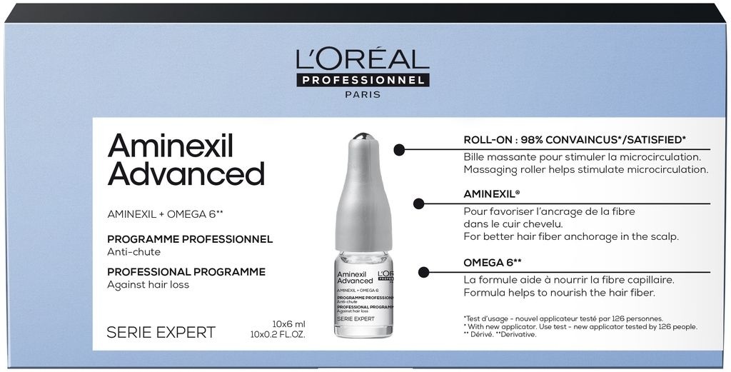 L’Oréal Professionnel Serie Expert Aminexil Advanced is een geconcentreerd serum voor fijn en dunner wordend haar, dat de haaraanzet versterkt en haaruitval tegengaat. Het intensieve serum versterkt de haarvezel vanaf de basis en zorgt voor een diepe voeding van het haar, waardoor de haargroei wordt gestimuleerd. Het tweevoudig werkzame programma is verrijkt met Aminexil en Omega 6 en bevat essentiële voedingsstoffen die de haardichtheid van wortel tot punt helpen beschermen. Het haarzakje wordt sterker verankerd in de hoofdhuid, met minder haaruitval als resultaat. De groei van nieuw, gezond en sterk haar wordt intens bevorderd .