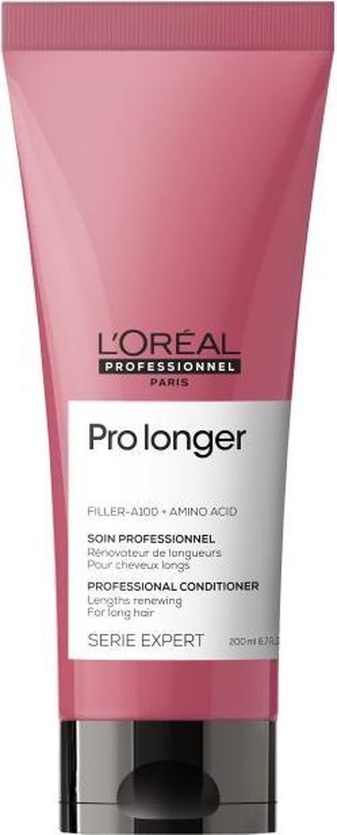 L'Oréal Professionnel Serie Expert Pro Longer Conditioner is een versterkende en verdikkende conditioner voor lang haar dat kracht en volume mist, met name in de punten. Het innovatieve en door L'Oréal gepatenteerde aminozuur Filler A-100 zorgt ervoor dat de haarvezel van binnenuit wordt gevuld, waardoor het haar versterkt en voller wordt. De lichtgewicht conditioner helpt haarbreuk te voorkomen met 44%*, maakt het haar heerlijk zacht en zorgt ervoor dat lang haar op een gezonde manier een nog langere lengte kan bereiken. Dunne, breekbare punten worden opgevuld en het haar splijt minder snel. Deze flacon van 500 ml heeft een grotere inhoud dan het standaardformaat, waardoor u langer van de conditioner kunt genieten, en een handig pompje voor extra gebruiksgemak.