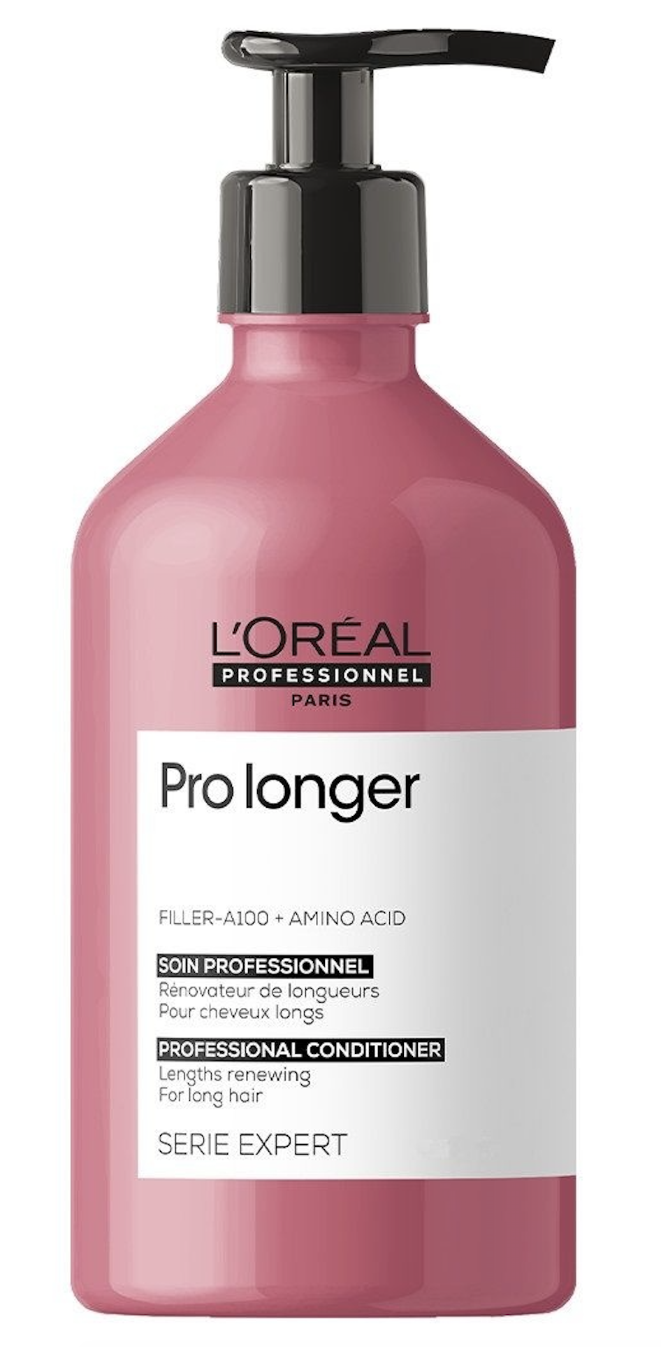 L'Oréal Professionnel Serie Expert Pro Longer Conditioner is een versterkende en verdikkende conditioner voor lang haar dat kracht en volume mist, met name in de punten. Het innovatieve en door L'Oréal gepatenteerde aminozuur Filler A-100 zorgt ervoor dat de haarvezel van binnenuit wordt gevuld, waardoor het haar versterkt en voller wordt. De lichtgewicht conditioner helpt haarbreuk te voorkomen met 44%*, maakt het haar heerlijk zacht en zorgt ervoor dat lang haar op een gezonde manier een nog langere lengte kan bereiken. Dunne, breekbare punten worden opgevuld en het haar splijt minder snel. Deze flacon van 500 ml heeft een grotere inhoud dan het standaardformaat, waardoor u langer van de conditioner kunt genieten, en een handig pompje voor extra gebruiksgemak.