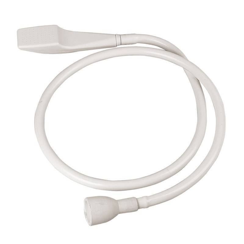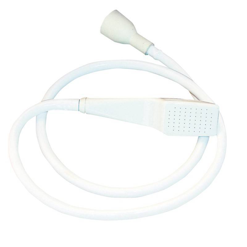 Ideaal om te gebruiken bij een mobiele wasbak. De handdouche is op vrijwel iedere kraan aan te sluiten en is makkelijk mee te nemen op locatie naar de klant. Het is gemaakt van rubber en in de kleur creme wit. De kop heeft een fijne sproeier en voor de kraan zit er een flexibele tuit aan die je zo op de kraan drukt.