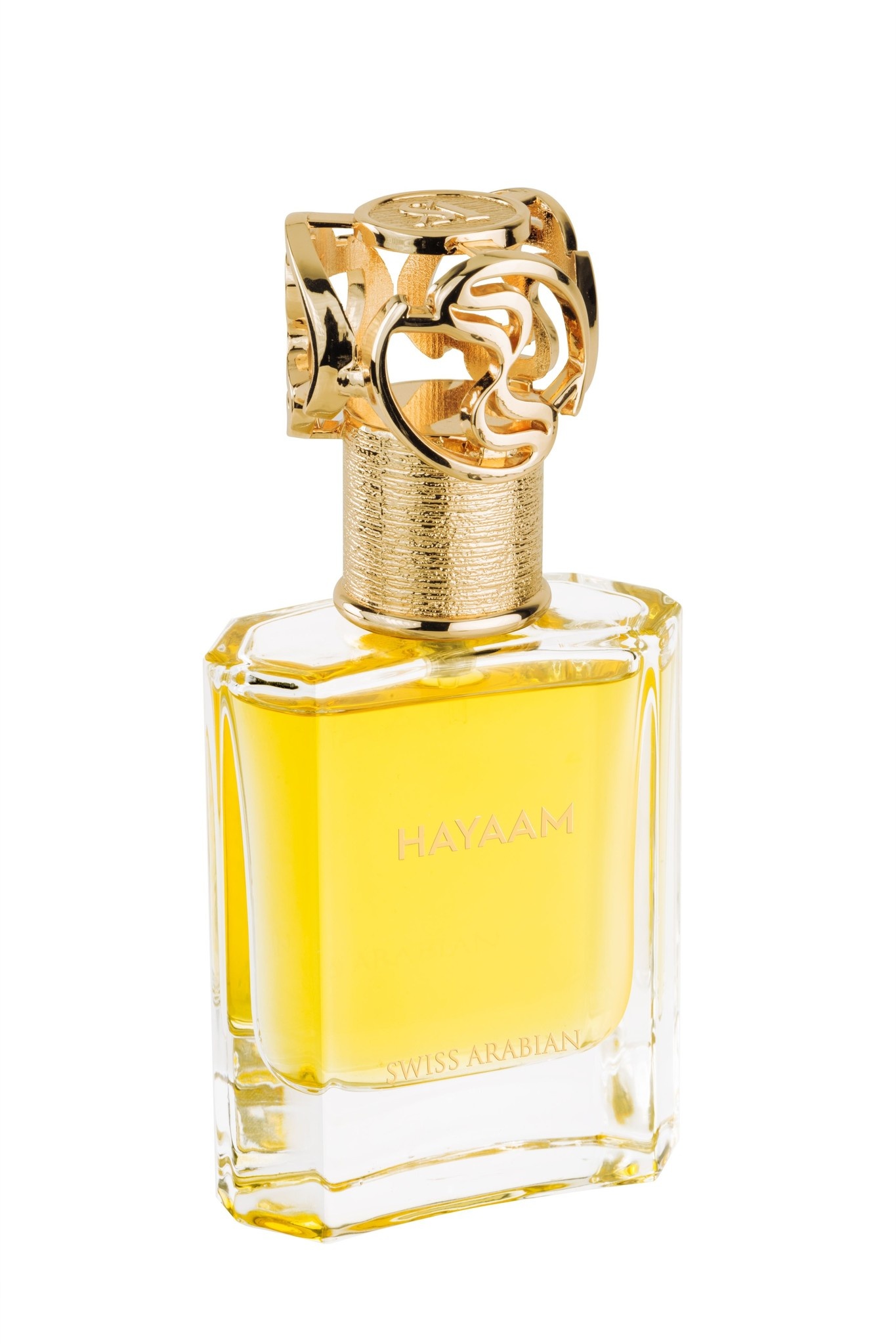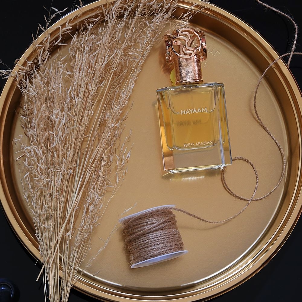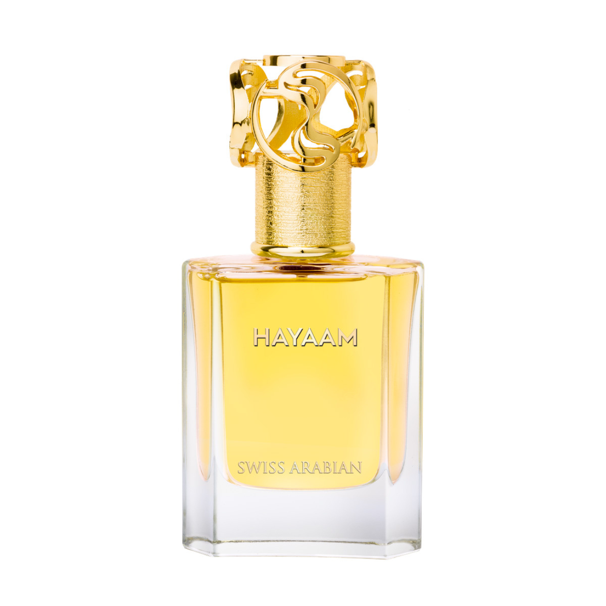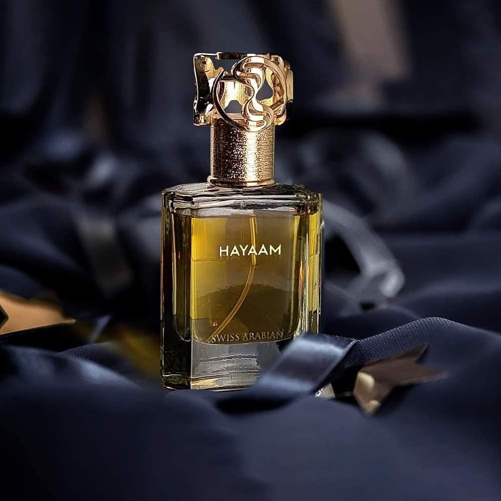 Hayaam betekent aanbidding. Het parfum binnenin, met zijn oogverblindende citrustonen, is gemaakt om je onmogelijk te weerstaan. Het is een houtachtige, leerachtige geur geïnspireerd door liefde waardoor je jezelf verliest. Verliefdheid omarmt al je gedachten en je ogen schitteren van glans bij elke blik die je deelt. Je bent machteloos om weerstand te bieden. Oogverblindende citrustonen laten je ziel dansen op het ritme van je hartslag en de uitstraling van je geur vult de kamer. De hitte van kruidnagel uit een ver land voegt een exotisch kruid toe aan je ziel terwijl de vurigheid van je passie in je ogen danst. Terwijl je geur je omringt met de oude bossen van het verleden en de zachte leertonen van het heden, weet je dat je voor altijd verdwaald bent in deze liefde. De warme amber omhelst je in zijn gouden uitstraling en fluistert dat dit de gelukzaligheid is waar je naar op zoek was. Verloren in de liefde.