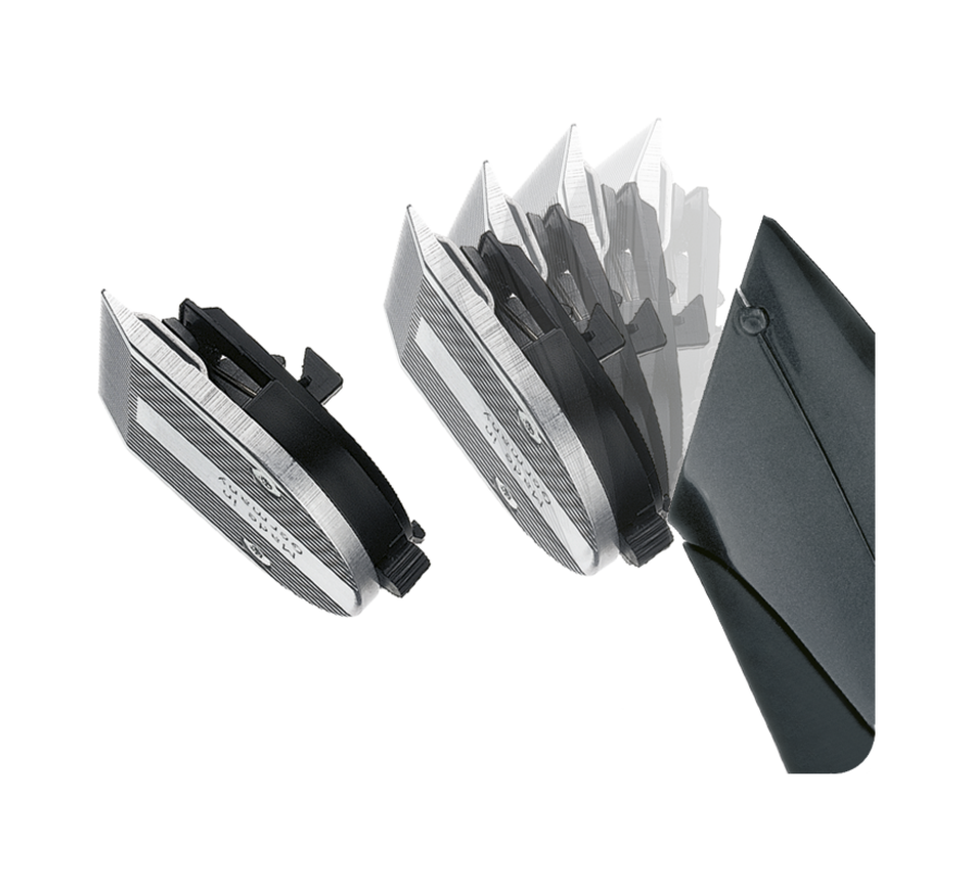 Met een instelbaar 5-in-1 snijsysteem biedt dit mes verschillende snijlengtes van 0,7 mm tot 3,0 mm, waardoor je eenvoudig kunt schakelen tussen verschillende stijlen. Of je nu een strakke scheerbeurt wilt of een net afgewerkte coupe, dit snijblad levert uitzonderlijke prestaties.