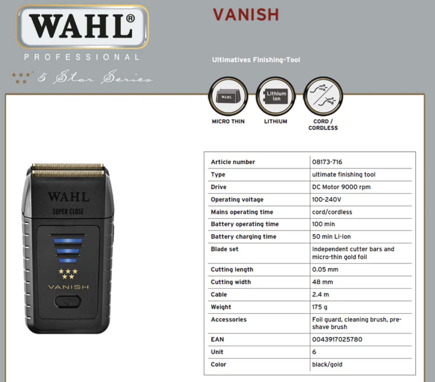 De allernieuwste Shaver van Wahl is nu leverbaar! De Vanish Shaver is de ultieme finishing tool uit de Wahl 5 Star Serie.